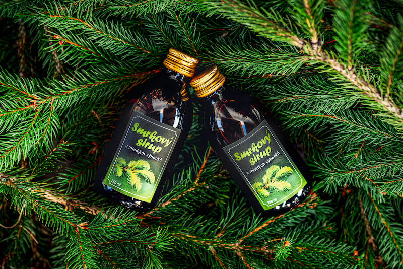 Náš smrkový sirup je čistě přírodní produkt vyráběný podle tradiční receptury z mladých výhonků smrku ztepilého. Výhonky jsou ručně sbírány v ekologicky čistém prostředí a šetrně zpracovány tak, aby si zachovaly své cenné látky. Neobsahuje žádná umělá aromata, konzervanty ani jiné chemické přísady.